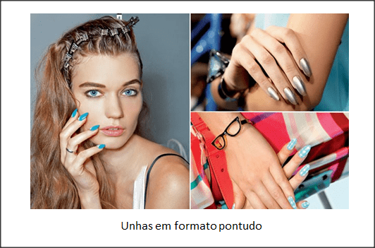 Seguindo as ideias vindas de Nova York, a tendência da vez em relação ao formato das unhas é longa e pontuda.