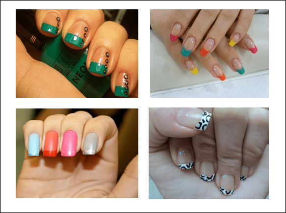 A francesinha também esta de volta, mas não será aquela tradicional, usado com esmalte na cor renda e pontinhas brancas, agora o estilo da vez permite mais, será uma francesinha com cores comuns como: café, vermelho, rosa etc., digamos que seja uma francesinha repaginada.