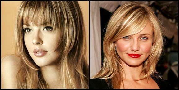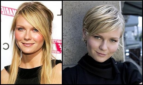 Franjas ou mechas jogadas “de lado” suavizam rostos arredondados e acentuam o maxilar. Tanto em cortes curtos, quanto em cortes longos.