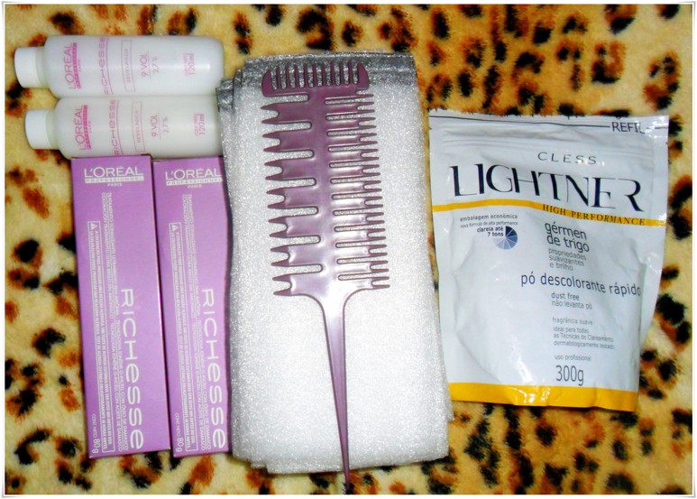Este é o tonalizante que utilizo para matizar as mechas após a descoloração. Richesse L’Oreal 9.01 (Milk Shake Gelo):