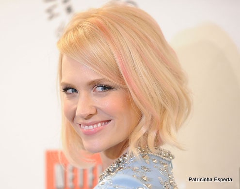 Jamie King foi de degradê de azul, enquanto January Jones apostou num tom bem suave, chamado de “rosa lavado”.