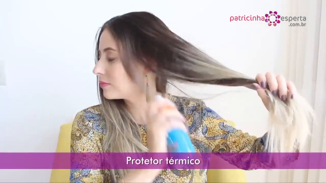 - 1- Comece lavando os cabelos apenas com shampoo ou uma quantidade muito pequena de condicionador caso ache necessário. Seque os cabelos com uma camiseta limpa (a toalha tira a água dos fios muito rapidamente deixando-os ressecados), aplique um protetor térmico de sua escolha para amenizar os danos da alta temperatura do secador e do babyliss.