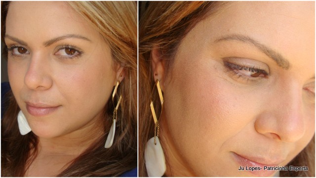 A minha cor é o bege médio, e deu certinho na minha pele, sem tirar nem por. A aplicação é fácil, ela espalha bem, não acumula nas linhas e nem nos cantinhos, e transfere pouco.