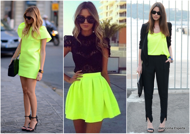 Eu prefiro investir nos detalhes néon, pra dar pinceladas de cor, mas pra quem não tem medo de ousar, até o look total fica show, sabendo dosar, é claro!