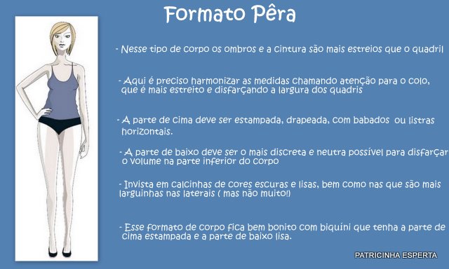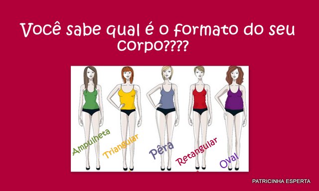 Mas antes de falar sobre como valorizar cada parte do nosso corpo, preciso explicar quais formatos de corpo existem.