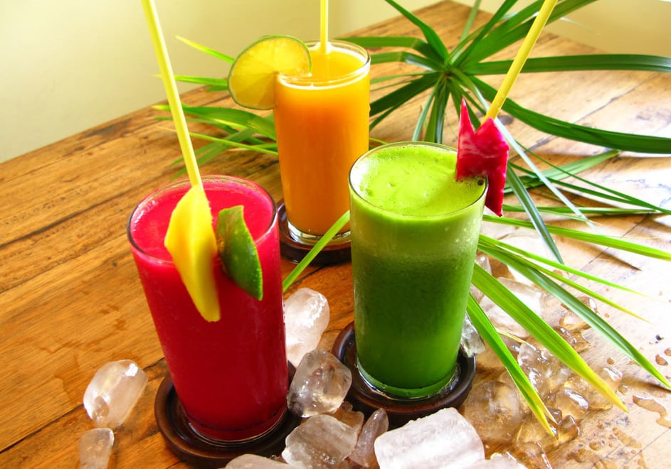 Bater tudo no liquidificador e servir com gelo a gosto.
