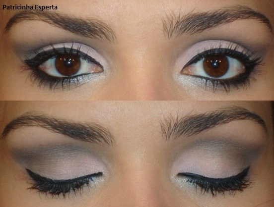 Optei por um rosinha claro bem suave, contrastando com um tom de chumbo, pra dar uma escurecida no olhar!