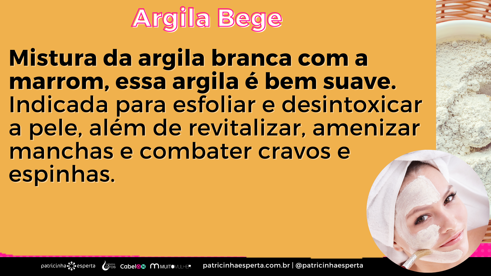 Mistura da argila branca com a marrom, essa argila é bem suave. Indicada para esfoliar e desintoxicar a pele, além de revitalizar, amenizar manchas e combater cravos e espinhas.