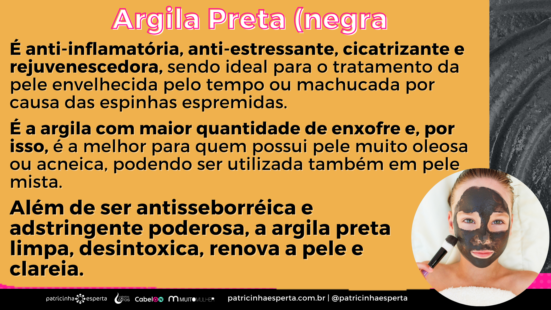 Além de ser antisseborréica e adstringente poderosa, a argila preta limpa, desintoxica, renova a pele e clareia.