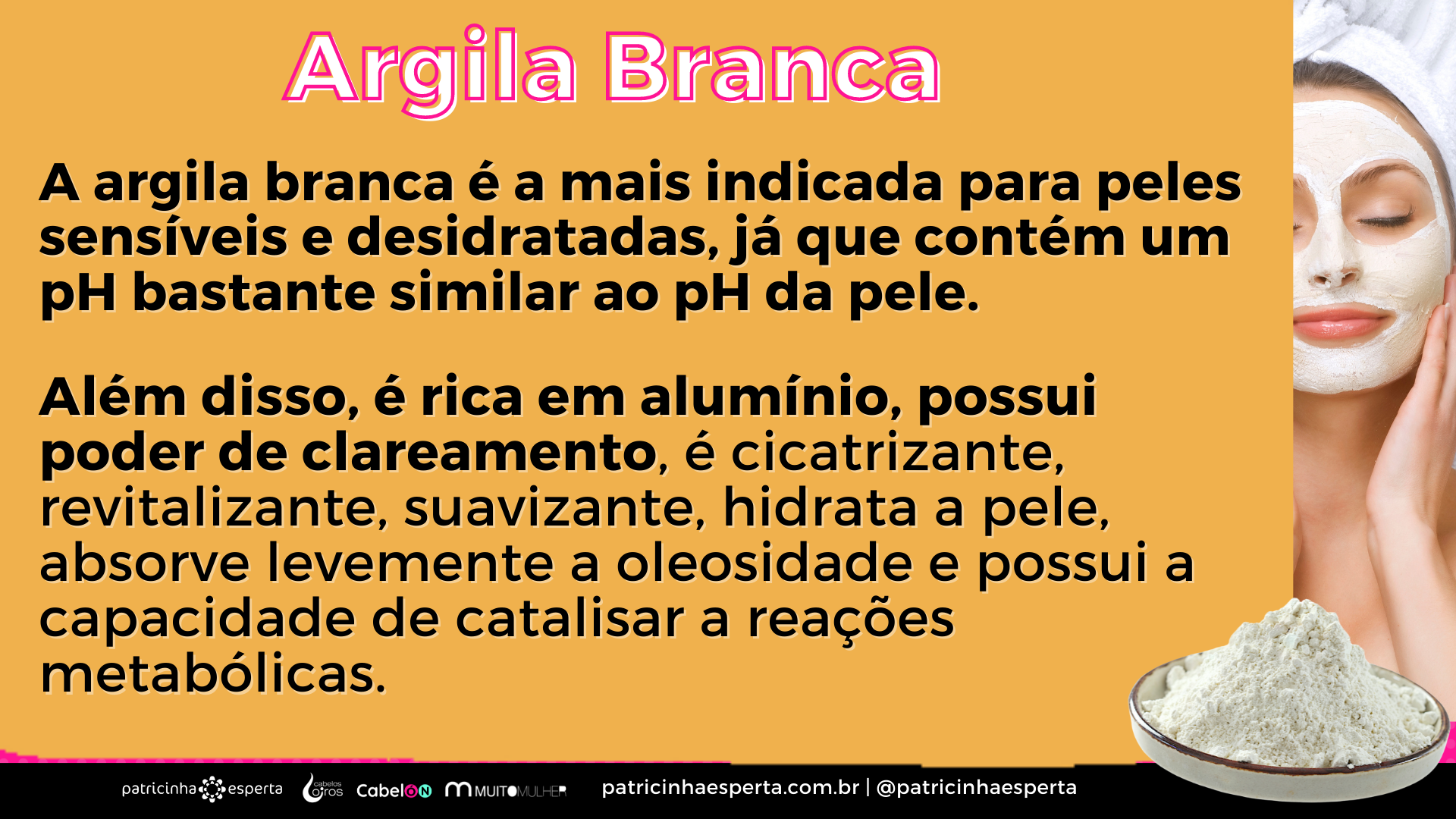 A argila branca é a mais indicada para peles sensíveis e desidratadas, já que contém um pH bastante similar ao pH da pele.
