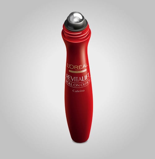Ele é um líquido transparente, à base de cafeína, e o aplicador é roll on de metal.