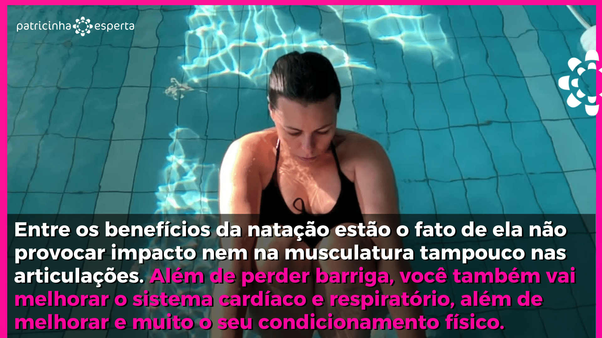 Entre os benefícios da natação estão o fato de ela não provocar impacto nem na musculatura tampouco nas articulações. Além de perder barriga, você também vai melhorar o sistema cardíaco e respiratório, além de melhorar e muito o seu condicionamento físico.