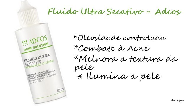 Como aqui em Jee não encontro os produtos da marca (e quase nada de marca nenhuma!), acabo usando outras coisas, mas nas férias de final de ano, lá em Ilhéus, achei uma esteticista que tinha alguns produtos e, claro, enlouqueci, porque queria tudo. Acabei comprando várias coisinhas para pele (é investimento, tá?) , como o filtro solar Fluid Tonalizante, para peles oleosas e acneicas (uma maravilha!) e o Fluido Ultra Secativo, que é minha nova melhor amiga!