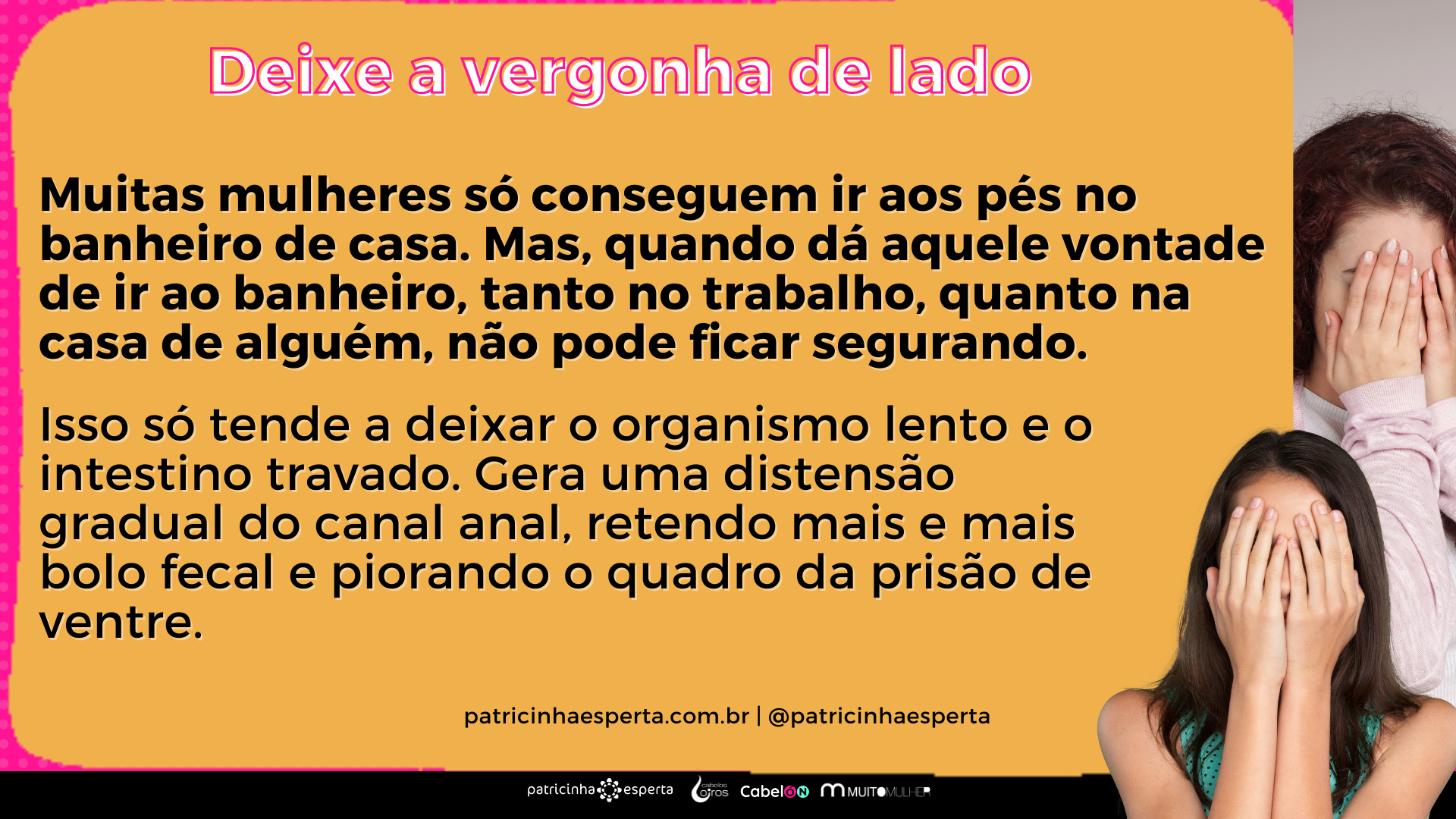 Isso só tende a deixar o organismo lento e o intestino travado. Gera uma distensão gradual do canal anal, retendo mais e mais bolo fecal e piorando o quadro da prisão de ventre.