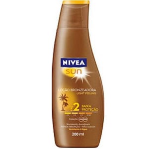 sobre o menos agressivo, ao que ela me disse que era a Loção bronzeadora Light Feeling, da Nivea.