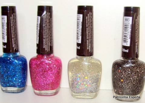 A diferença dos demais esmaltes com glitter é que esmalte vêm com dois tipos de glitter, o comum e um glitter maior, holográfico, com um formato que facilita o reflexo das cores.