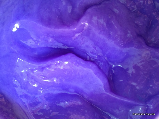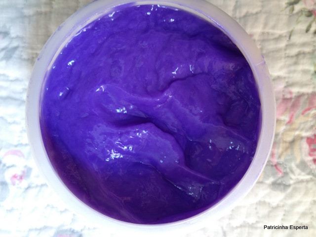A aplicação no cabelo é simples e a impressão que se tem é que o  cabelo “chupa” o pigmento, que, apesar de roxo, sai branquinho dos fios na hora do enxágue.