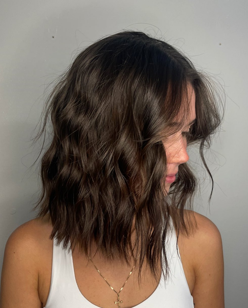 A altura deste corte, é sempre entre as orelhas e os ombros. Pode ser repicado, se você quiser quiser mais ondulado e com um pouco de volume, ou mais reto, dando apenas movimento e alongando o rosto. Não tem como não se apaixonar por esse corte.