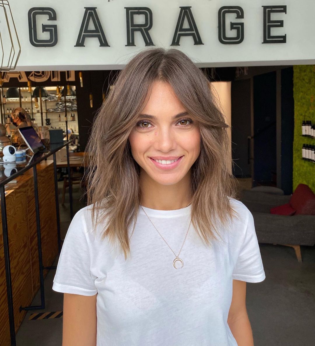 O corte repicado adiciona um toque de drama ao seu visual, enquanto a franja cortininha fornece uma moldura sutil e romântica para o seu rosto.