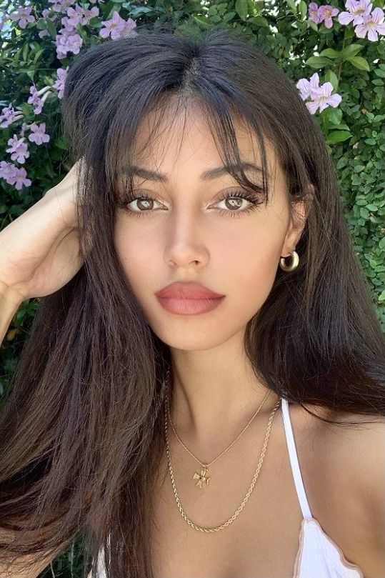 A franja transparente é um tipo de franja levemente volumosa e levemente desfiada, permitindo que você veja a pele através da franja. O acabamento moderno é combinado com o clássico comprimento médio que atinge a altura das sobrancelhas. Isso é perfeito para quem quer apostar em uma franja estilosa sem radicalizar.