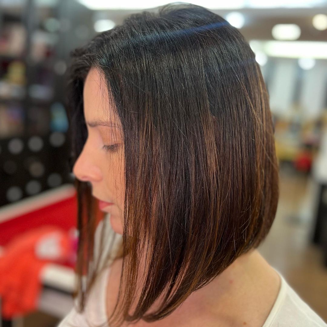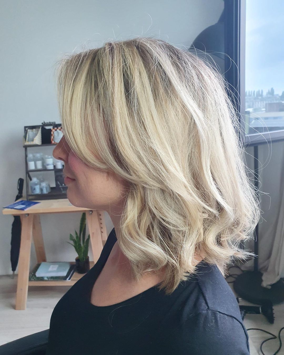 # Um clássico é o corte médio repicado na parte de trás, com pontas longas levemente desfiadas na parte da frente, o corte é ideal para alongar e afinar o formato do rosto.