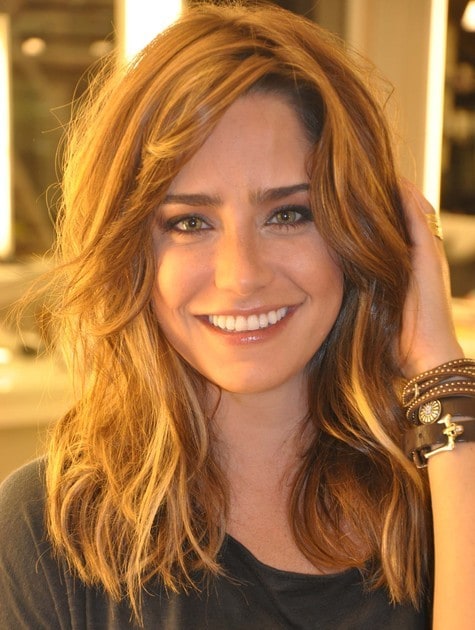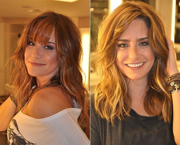 Marcos Proença, que foi quem “comandou” a mudança explicou que o castanho escuro natural da atriz foi neutralizado com um tonalizante louro acinzentado para revelar nuances de marrom, e foram feitas luzes suaves no comprimento e pontas, pra dar mais brilho e movimento aos fios.