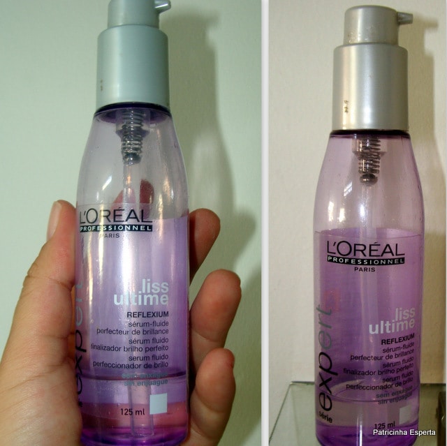 Um que eu gosto muito é o FLiss Ultime, que é um sérum de brilho para cabelos rebeldes e indisciplinados.