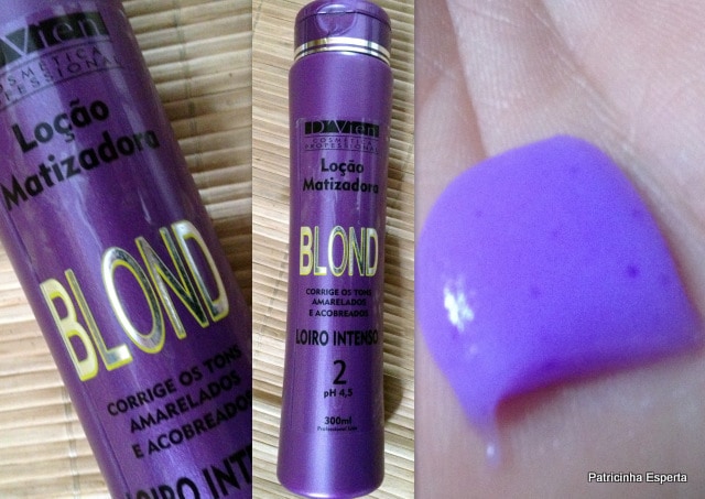 Segundo informações do rótulo, trata-se de um produto indicado para corrigir os tons alaranjados, acobreados e esverdeados dos fios, iluminando o tom claro dos cabelos loiros, ao mesmo tempo em que trata os fios.