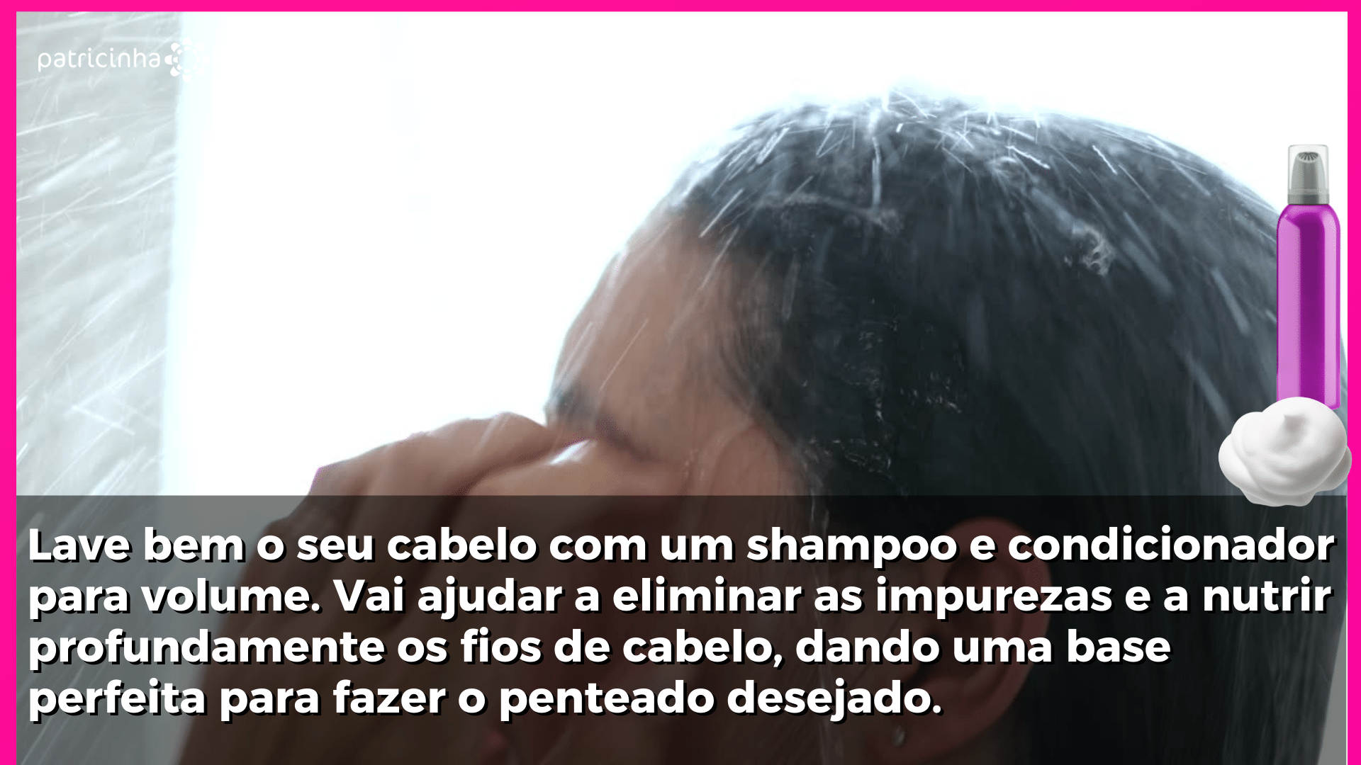 Passo 1 Lave bem o seu cabelo com um shampoo e condicionador para volume. Vai ajudar a eliminar as impurezas e a nutrir profundamente os fios de cabelo, dando uma base perfeita para fazer o penteado desejado.