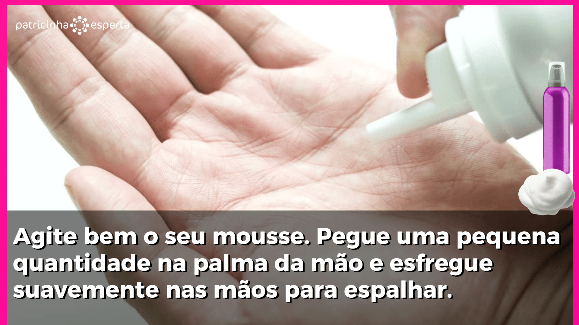 Passo 3 Agite bem o seu mousse. Pegue uma pequena quantidade na palma da mão e esfregue suavemente nas mãos para espalhar.