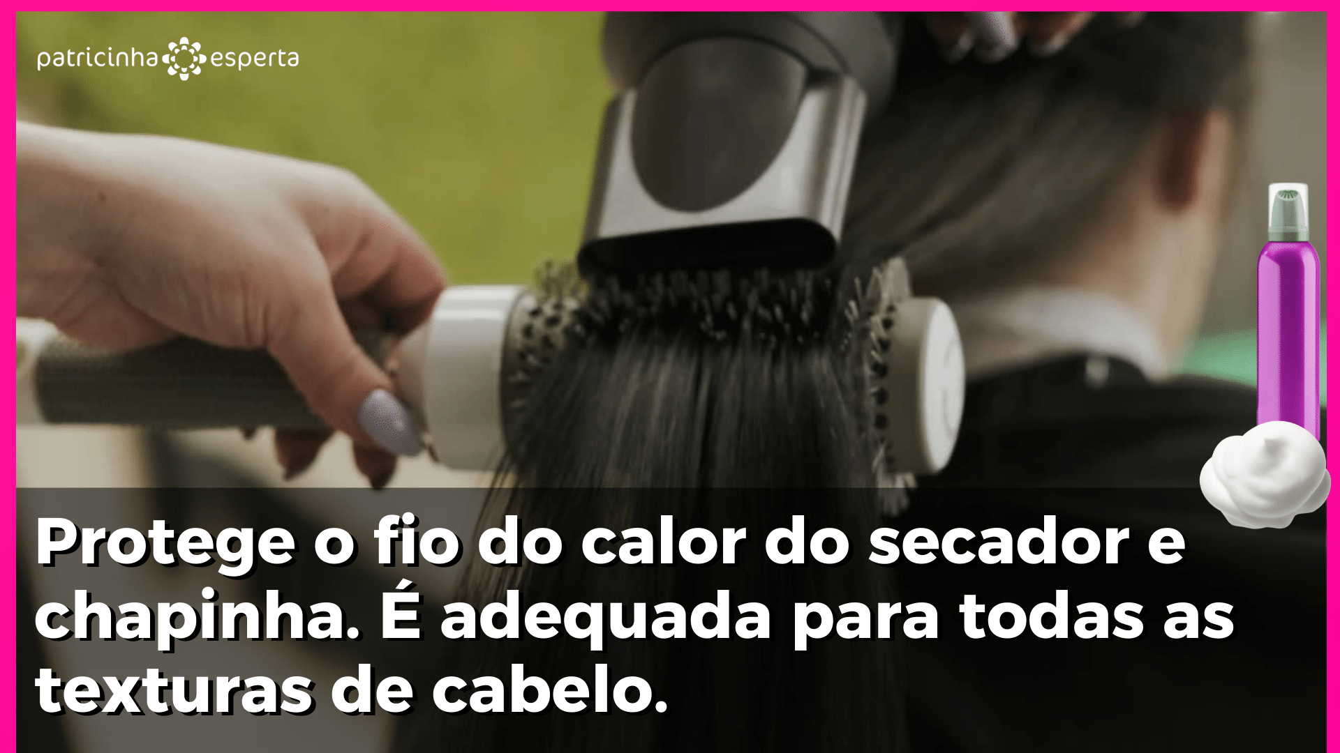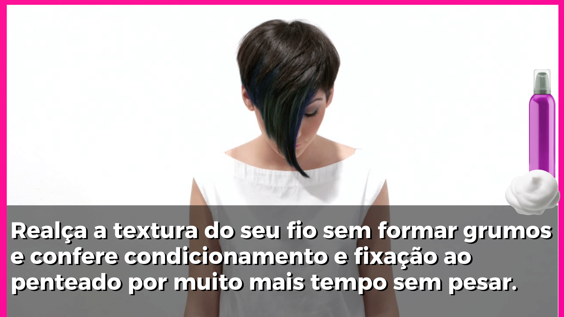 O mousse para cabelo atua como uma camada protetora do fio. Protege o cabelo de ser afetado pela umidade e mantém a sua estrutura natural.