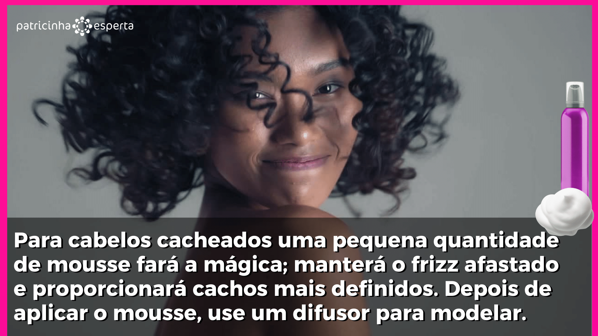 Se você tem cabelos cacheados; o mousse vai definir os cachos e ajuda a evitar o frizz.