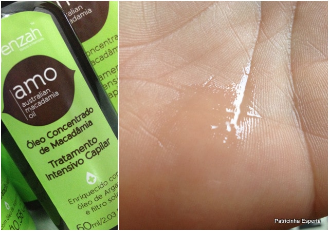 Quando falei da máscara da linha AMO, disse que apaixonei no óleo, e o motivo é simples: NUNCA vi nenhum óleo para cabelo com a textura tão fina quanto esse!