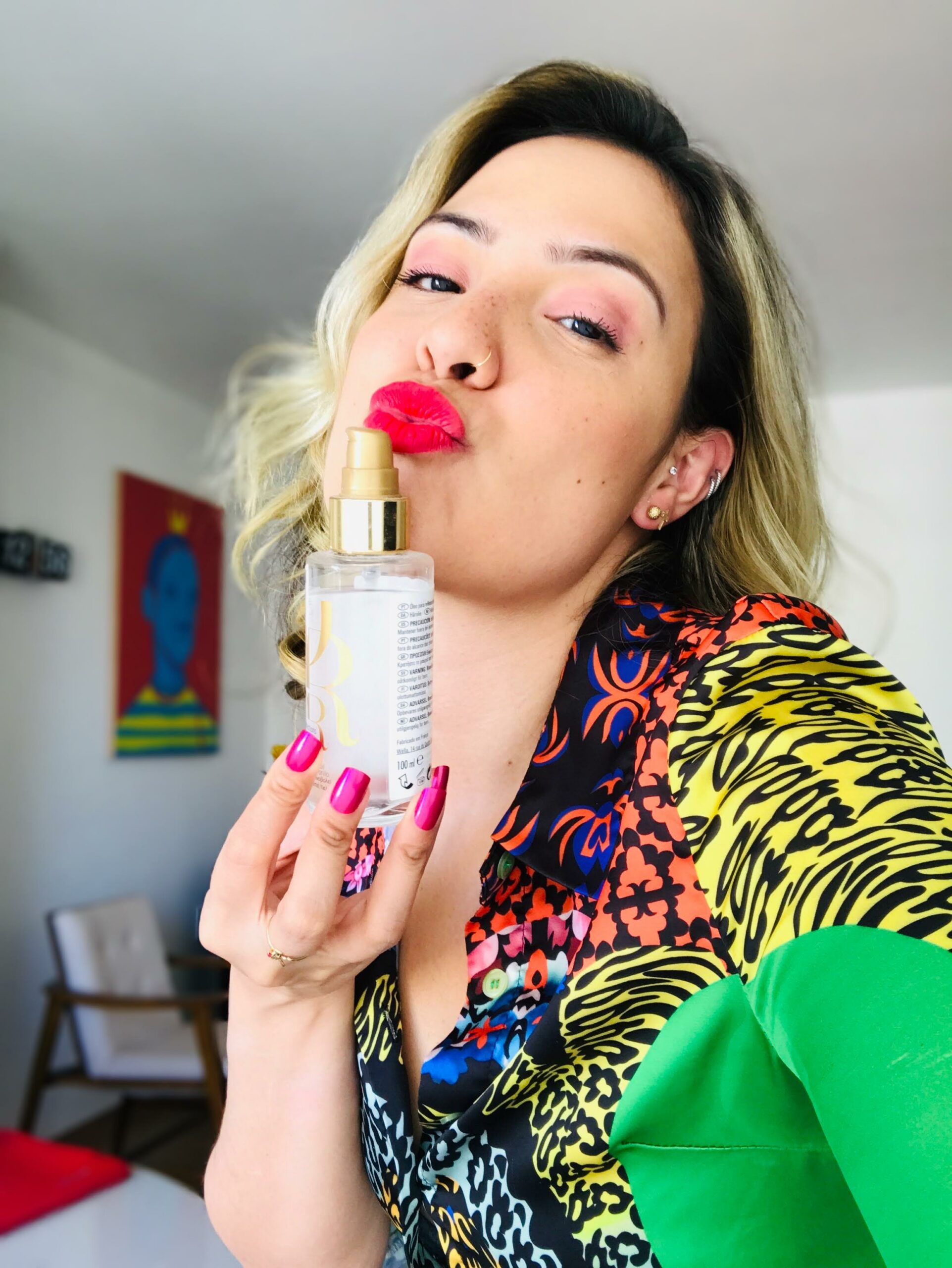 E com os cabelos secos, eu coloco algumas gotinhas nas mãos e aplico nas áreas mais frisadas, ele dá uma boa disciplinada nos fios arrepiadinhos, além de disfarçar as pontas duplas e dar um super brilho.
