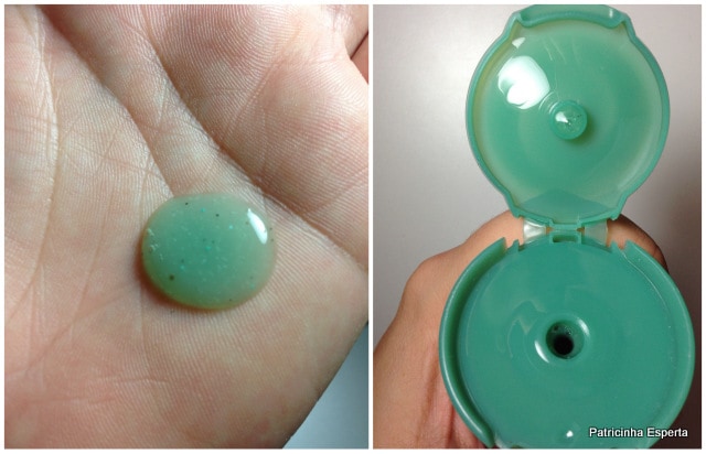A textura parece um tipo de gel, é bem espessa e cheia de grânulos esfoliantes de dois tipos, uns bem fininhos e outros um pouco mais grossinhos.