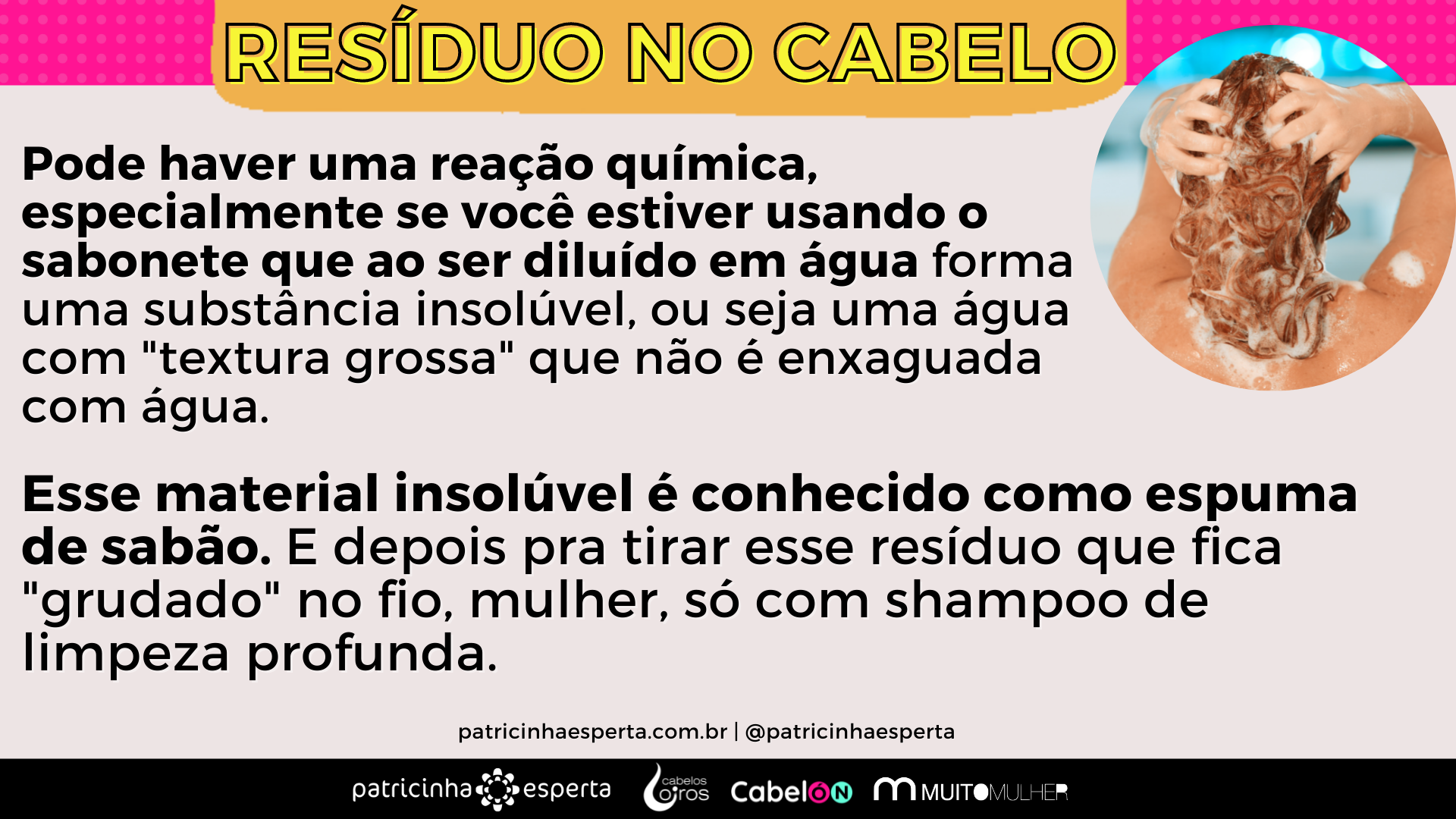 Esse material insolúvel é conhecido como espuma de sabão. E depois pra tirar esse resíduo que fica “grudado” no fio, mulher, só com shampoo de limpeza profunda #socorro.