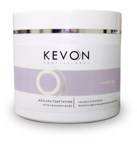 A máscara Temptation Kevon contém uma formula super concentrada que hidrata e nutre os cabelos danificados por ações externas (sol, vento, cloro), mecânicas (escova, secador) e quimicas além de formar um filme protetor conferindo proteção, força e resistência, resgatando a flexibilidade natural dos fios favorecendo a reparação da fibra dia após dia.