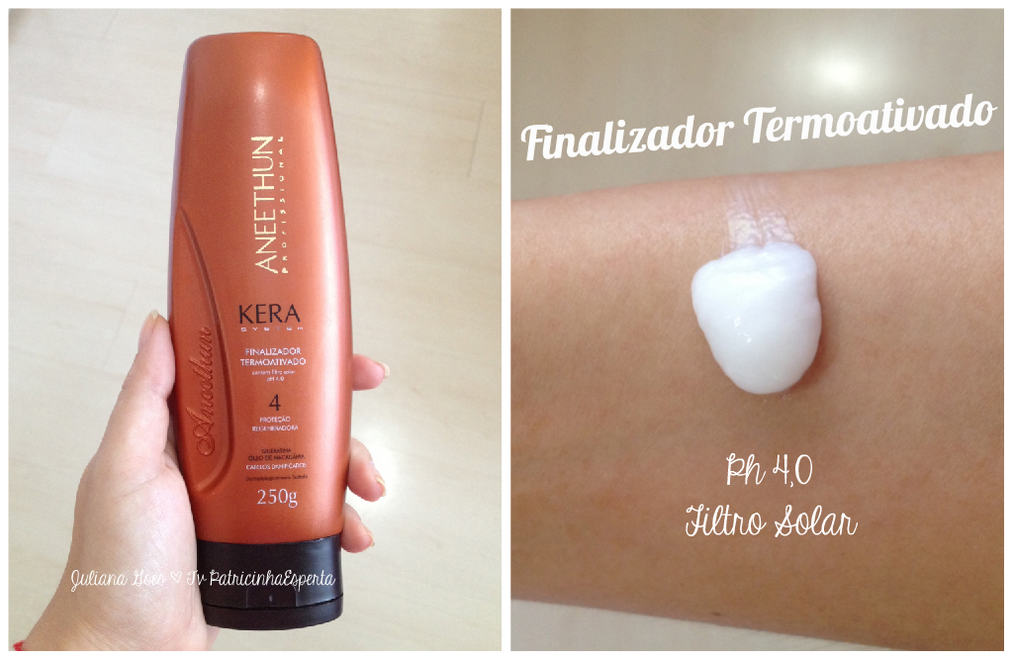 Não testei a linha completa, mas achei o Finalizador Kera System bem digno. Em primeiro lugar, porque é um produto profissional, assim como os outros da Aneethun, que existe na versão cliente (tamanhos menores), sem nenhuma modificação na fórmula. A textura é consistente, então não mela, não escorre e não se perde no meio dos fios. Ao mesmo tempo é fácil de espalhar com o cabelo úmido antes do secador ou até mesmo para deixar o cabelo secando naturalmente.