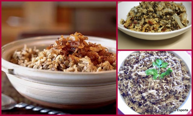 Junte as cebolas que douraram pouco com o arroz e o azeite e coloque para cozinhar. Acrescente a lentilha, sal e pimenta do reino a gosto. Desligue o fogo e deixe a mistura descansar por 10 minutos. Após esse tempo, coloque a mistura em uma tigela e espalhe por cima as cebolas que ficaram bem douradas.