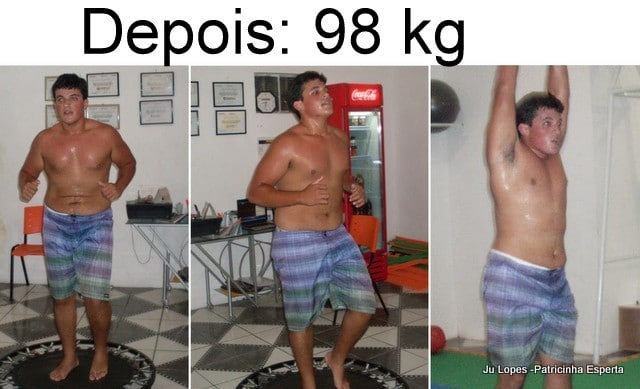 Engraçado que, pelas fotos, parece que ele perdeu bem mais peso, porque o corpo dele não parece, nem de longe, com o de uma pessoa que pesa 98 kg, mas o Saú, lá da Corpory Treiner, me explicou que é porque ele trocou massa gorda por massa magra.