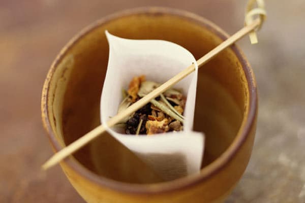 Esse chá é comercializado em cápsulas e em sacos com as ervas secas, que é o ideal.