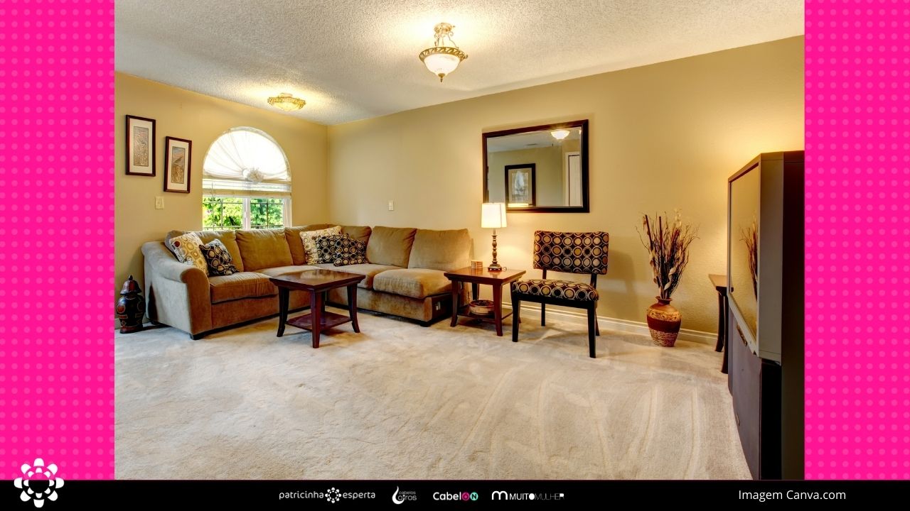 As cores também ajudam a aquecer. Como o tapete será em uma cor terrosa, você ainda pode escolher elementos que possam deixar a sala com ar mais quente, como mantas para serem colocadas em cima dos sofás que sejam em tons de vermelho ou marrons. Vai dar uma mudada no sofá comum, que é usado também no verão, e ainda deixar o ambiente com um ar de frio.