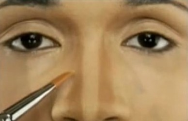 2- Para diminuir o nariz, use um pincel um pouco menor, mas fofo também e passar o mesmo pó ou mesmo uma sombra escura e opaca nas laterais em direção vertical, do nariz para eles parecerem menores.