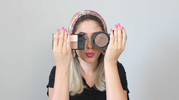 O importante é você conhecer as curvas do seu rosto e utilize a make mais adequada para o seu tipo de pele. Hoje, há diversas opções de produtos para você aprender como realçar contorno no rosto. Desde corretivos líquidos, lápis, base e pó compacto. Para o vídeo eu utilizei três tons de pele, e escolhi o pó, que é mais fácil de esfumar. Mas se você tiver apenas duas tonalidades já conseguirá um efeito bem bacana. Uma deve ser cerca de dois tons mais claro que a sua pele e outra cerca de dois tons mais escuros.