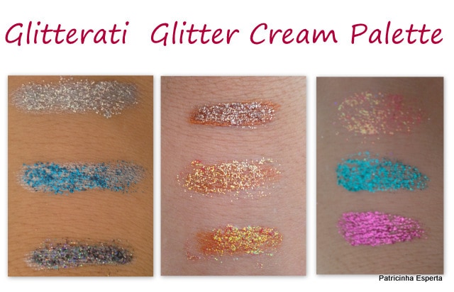 A paleta é grande, cada “cor” é do tamanho de uma moeda de 1 Dilma e ela vem com dois aplicadores. Adorei a ideia do glitter em gel justamente pela praticidade, além do fato óbvio de que não faz meleira, mas esperava mais da paleta e vou explicar os motivos.
