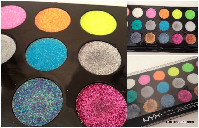 Daí que vi na net uma paleta de glitter cremoso da Nyx e fiquei LOUCA de vontade, mas me segurei, porque né, Jee não é uma cidade onde eu possa sair de glitter pink nas pálpebras sem ser chamada de louca. Acontece que a Angélica, uma amiga minha do Face (é incrível a quantidade de leitoras que viraram amigas e essa é uma das melhores partes de blogar!) me enviou justamente essa paleta de presente. Chorei purpurina de felicidade!