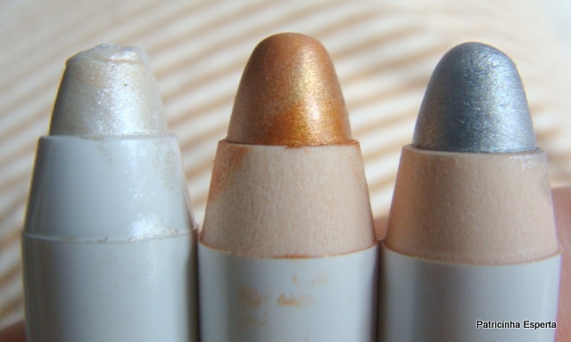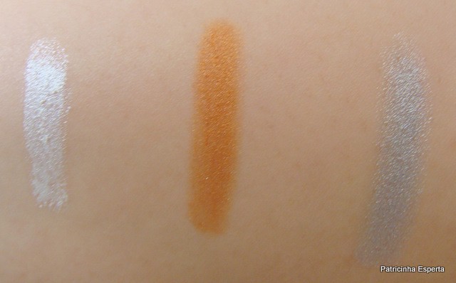 Como a cartela de opções dos jumbos da Nyx é bem grande, tava doida para testar outros, e me joguei logo em mais três cores, sendo que duas são bem básicas e usáveis por quem gosta de prata e dourado.