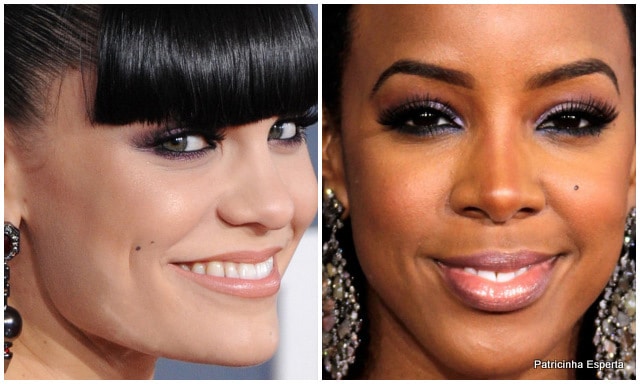 A Kelly Rowland foi de sombra colorida, o que eu adoro! Lilás na pálpebra superior, azul rente aos cílios inferiores e, pra completar, muitos cílios postiços!