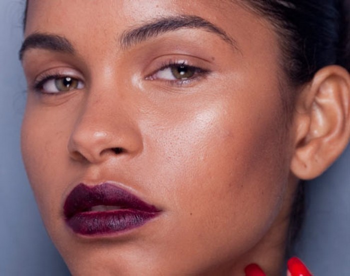 Na boca, as amantes dos tons escuros vão adorar a tendência! Eryn conta que o mais indicado para o inverno 2013 são os tons de vinho. Ele pode ser usado de dia e também nas produções à noite. Fica bem em peles morenas e claras. Já as mulheres negras podem usar um tom de vinho mais violeta, mais aberto, para realçar a boca. “Além do vinho, tons escuros, como o vermelho clássico, o laranja mais fechado e o rosa magenta estarão entre os preferidos da estação. O bom é sempre fazer um contraste com o tom de pele”, garante Eryn.