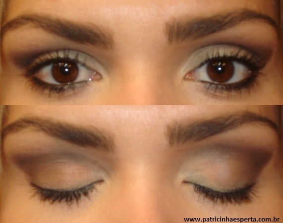 Bom, feito o canto externo com a sombra marrom e esfumado bem com um pincel de côncavo, eu passei um pouco da mesma sombra rente aos cílios inferiores com um pincel chanfrado.